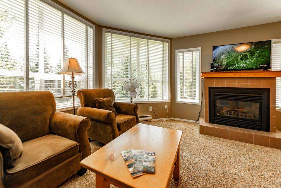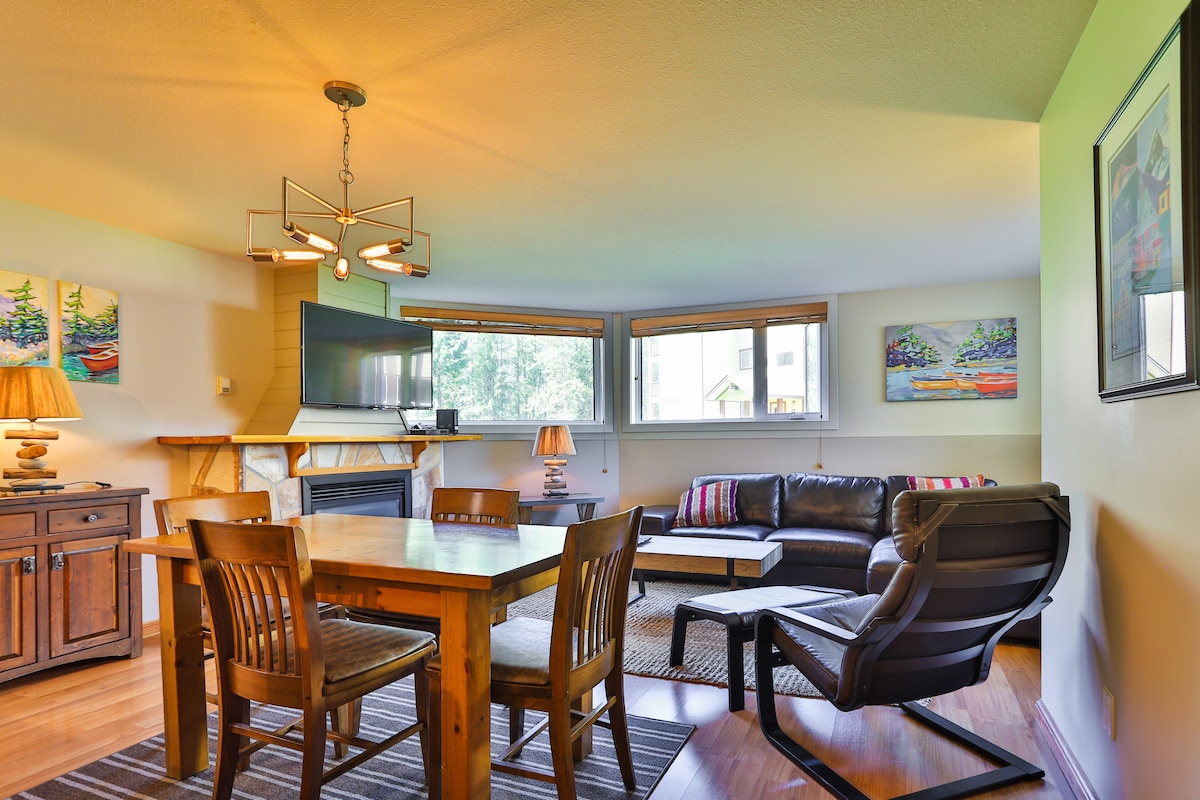 ¡Algunas de las mejores vistas de las colinas de esquí en Fernie! Con grandes ventanales, los huéspedes pueden disfrutar del deslumbrante sol de la noche en la habitación. Disfruta de la cómoda cama tamaño queen, junto con los pisos climatizados en la entrada y el baño. Los huéspedes tienen el uso total de la cocina, el comedor y la barra de desayuno. Acomódate junto a la chimenea por la noche y mira tus películas favoritas en el televisor de pantalla plana.