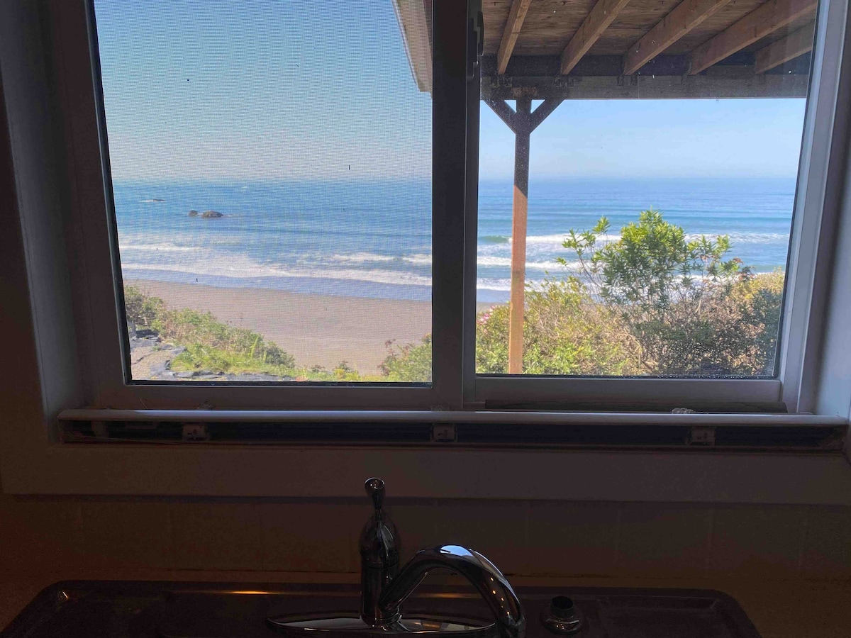 Ridgecrest Cottage se encuentra en una ladera con vistas al mar en la hermosa y pequeña ciudad costera de Port Orford, Oregón. Ridgecrest Cottage es una casa de 2 pisos de 1600 pies cuadrados conectada por una escalera exterior. Es una casa de 2 baños y 2 dormitorios y tiene un loft para dormir con dos camas adicionales. El patio está vallado y tiene una perrera al aire libre adicional si es necesario. Hay una bañera de hidromasaje, chimenea, parrilla de gas, jardín de hierbas y muchos asientos al aire libre.