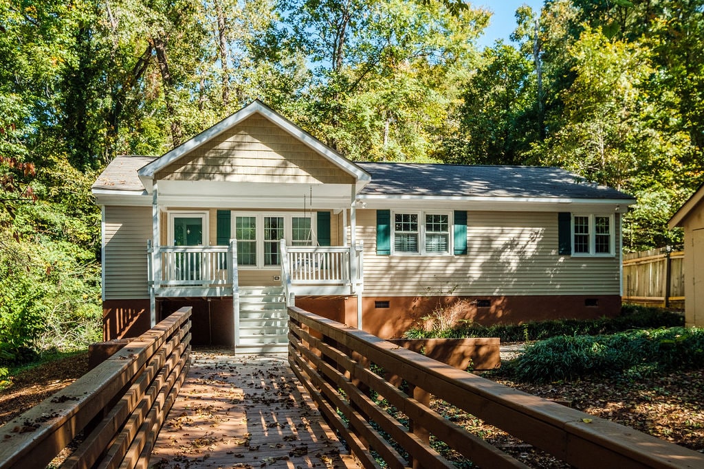 Desde el momento en que navegas por el corto camino de grava curvado hacia el corazón de este pequeño bosque hasta la cubierta cubierta (la longitud completa de la casa), te cautiva el deseo de simplemente relajarte en las sillas Adirondack o disfrutar de la vista de las copas de los árboles desde la hamaca en la parte trasera. Ubicada inteligentemente en un bosque de bambú y madera dura, lejos de la calle detrás de las casas de la calle, encontrarás esta casa como un respiro tranquilo de la vida de la ciudad, pero a solo 5 minutos del centro.