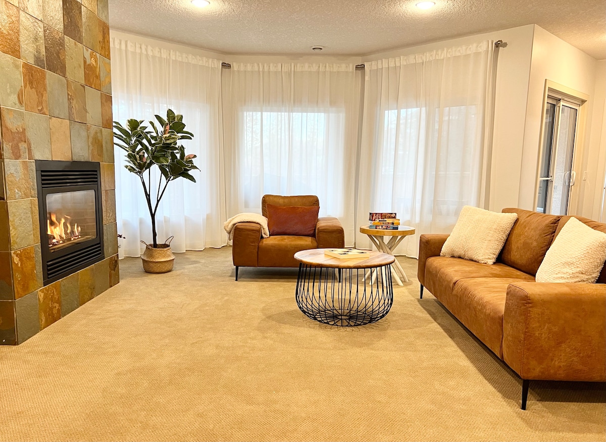 Welcome to our charming Walkout Basement retreat by the Bow River! Recently renovated, our space offers a private entrance, huge windows, high ceilings, cozy fireplace and 2 stylish bedrooms with comfortable queen and double beds. You will love the convenience and comfort of our space. Enjoy direct access to the backyard. With a convenient driveway parking spot. You’re just steps away from plaza, Sobeys grocery store, restaurants, and the World's largest Seton YMCA with a waterpark and Hospital