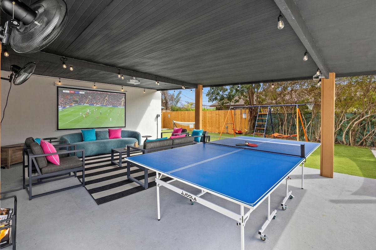 Disfruta de un terreno de 0,5 acres totalmente vallado con piscina climatizada, bar Tiki y nueva sala de juegos para crear recuerdos duraderos con tus seres queridos. Perfecto para familias, parejas, viajeros de negocios o grupos grandes. Estás a poca distancia a pie del centro comercial Sawgrass Mills, el estadio FLA, restaurantes, entretenimiento, vida nocturna, actividades para familias y parques. A menos de 15 minutos de Hard Rock y Las Olas Beach. Disfruta del equilibrio entre un barrio muy tranquilo y estar cerca de la acción de la ciudad. ¡Reserva ya tus vacaciones!
