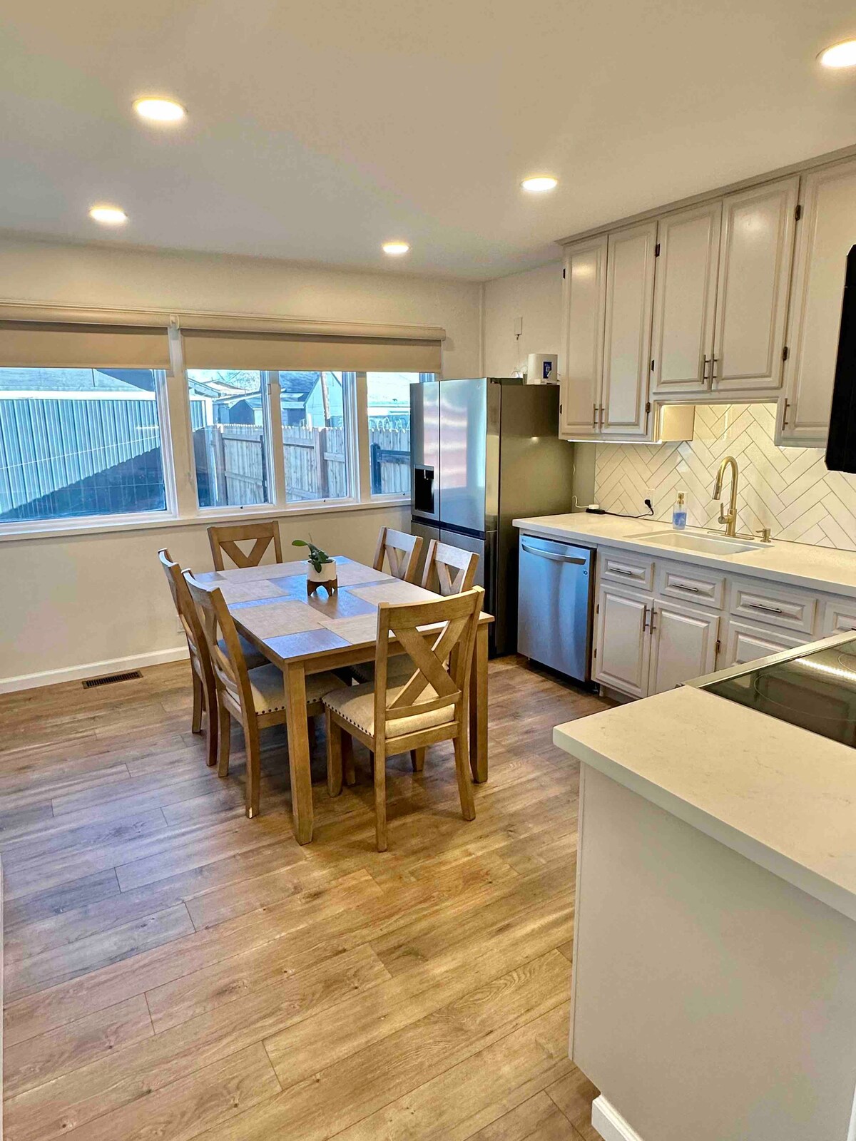 Esta nueva y moderna casa unifamiliar es el lugar perfecto para relajarse y desconectar. Con sus espaciosas habitaciones, patio trasero privado y comodidades modernas, te sentirás como en casa. La planta principal cuenta con una sala de estar de concepto abierto, comedor y cocina con amplio espacio para entretener a los huéspedes. La cocina está totalmente equipada, tiene una máquina de café expreso y una barra de desayuno. También hay una acogedora sala de estar y una gran televisión. El dormitorio principal tiene su propio baño privado con bañera de inmersión y un vestidor.