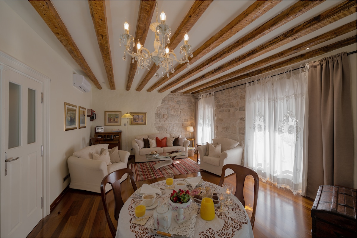 Wake beneath exposed beams of centuries-old wooden ceilings. Be charmed by antique touches, industrial-style stairs, and fine finishes nestled behind the sprawling, massive internal stone arches of the Imperial Palace protected by UNESCO. Steeped in history, drink a glass of wine from the balcony of this unique loft after exploring Split’s delights, where museum pieces adorn a palette of sand and muted, earthy hues.