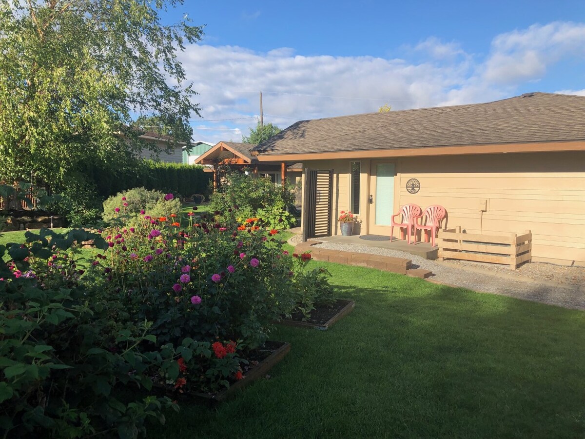Una indulgencia asequible en un lugar tranquilo cerca del centro de la ciudad y del valle de Spokane. On Sacred Grounds ofrece hospitalidad tradicional con comodidades modernas. Este alojamiento privado en la parte baja de South Hill incluye 2 dormitorios privados (queen y camas completas), baño contiguo, sala de estar con sofá/futón, mininevera, TV, piano, (450 SF) y acceso compartido a una cocina completa. La comodidad y la relajación son lo más importante. Desayuno caliente disponible cuando los horarios lo permitan, incluyendo tortilla, tostadas francesas, panqueques y más.