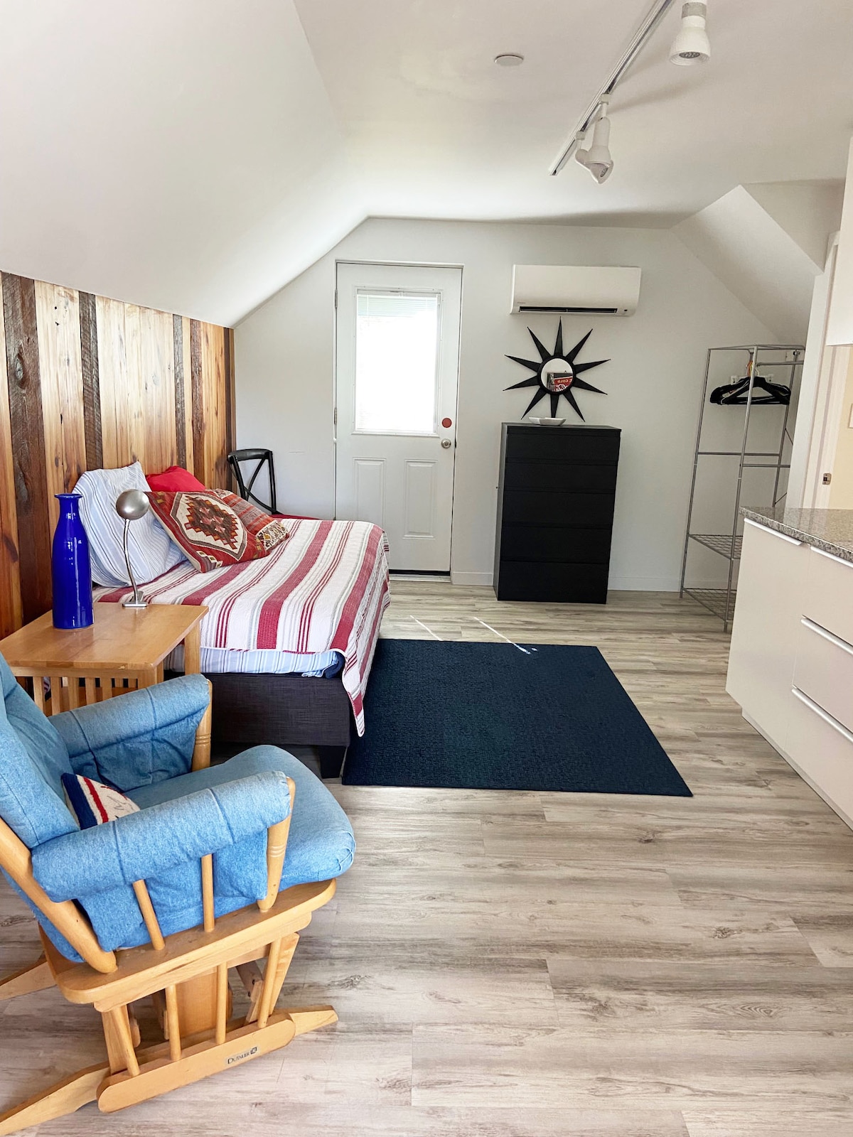 La casa ecológica y respetuosa con el clima cuenta con habitaciones pasivas orientadas al sur con grandes ventanales de triple acristalamiento para un aspecto contemporáneo y luminoso. Los sistemas de construcción de última generación ofrecen comodidad durante todo el año. Las características inteligentes y los materiales reutilizados elegidos con buen gusto hacen que nuestro alquiler sea interesante y agradable. Las adiciones saludables incluyen: Sistema de ventilación interior, agua potable con filtración de agua dulce, patio trasero privado y patio lateral con flores y huertos de temporada.
