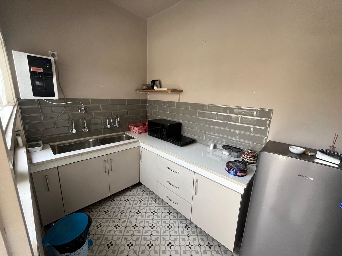 • Apartamento recién construido, totalmente privado en el primer piso • 3 dormitorios tamaño king, 2 baños, gran sala de estar y balcón con vistas verdes • Cocina modular, placa de inducción, agua RO y utensilios de cocina básicos. Swiggy/Zomato/Instamart/Blinkit disponibles • Aire acondicionado dividido, calefacción opcional, paneles de pared LED y noches de karaoke opcionales • Ubicación privilegiada en el centro de la ciudad: cerca del Templo Dorado, tiendas y restaurantes locales • Ambiente residencial tranquilo y silencioso, ideal para familias y grupos • Orientación local personalizada del anfitrión y comodidad premium