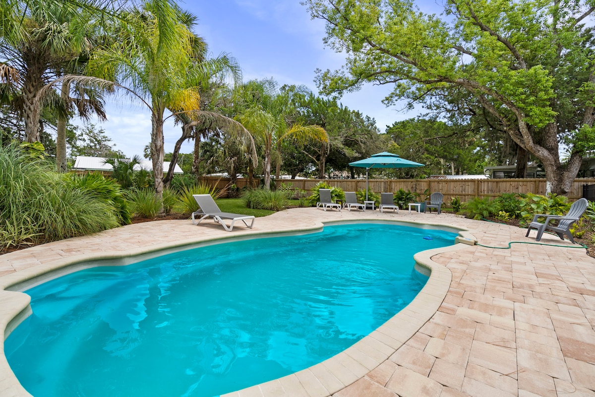 ¡Impresionante suite privada para huéspedes ubicada en la isla Anastasia, cerca del anfiteatro de St. Augustine! ¡A poca distancia a pie del Parque Estatal de Anastasia! Disfruta de tu estancia en la isla sin todo el ajetreo de un hotel. ¡Tenemos bicicletas playeras disponibles para su uso! ¡Estamos a 1,5 millas del acceso a la playa pública más cercana y a 3 millas en bicicleta del centro de St. Augustine! Actualización para la pandemia de COVID-19: rociaremos todas las superficies duras con desinfectante aprobado por la EPA para hacer todo lo posible para asegurarnos de que las superficies sean seguras.