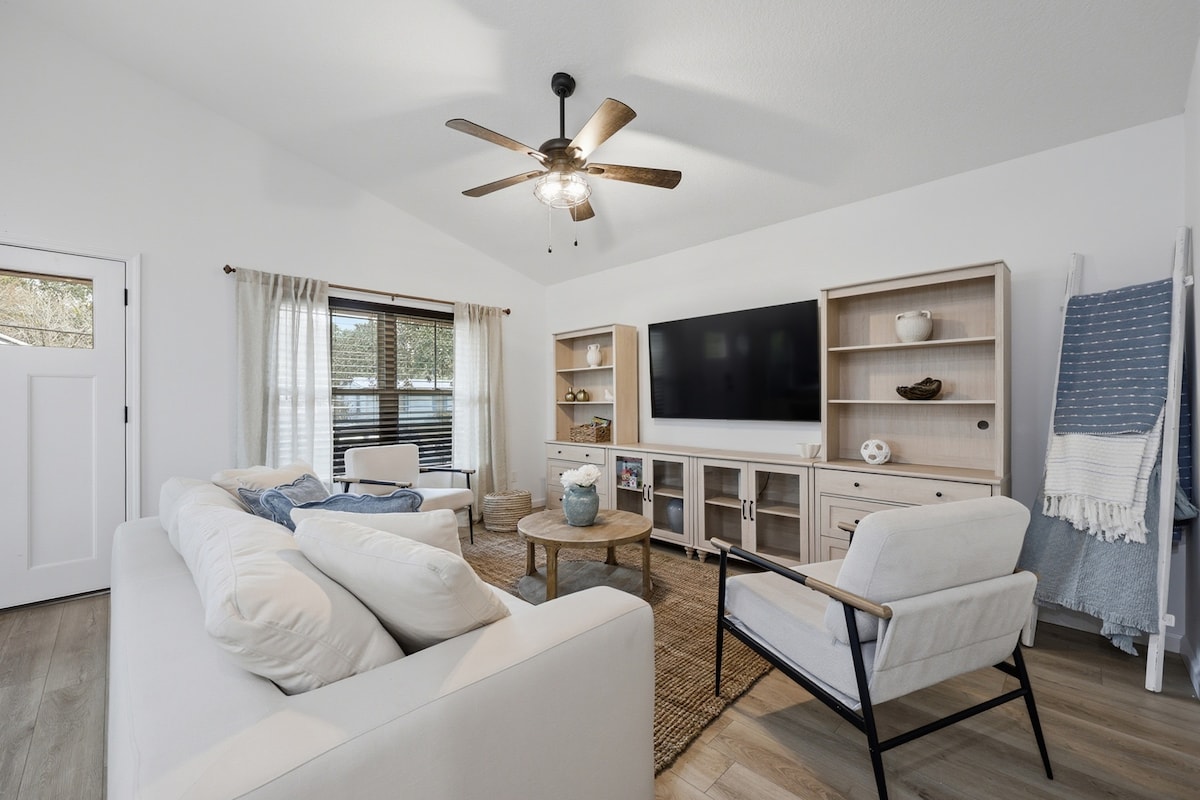 ISLE BE BACK 🌴: ¡una NUEVA casa moderna! Las fechas se llenan rápidamente para primavera y verano. ¡Reserva tu estadía ahora! ¡Bienvenido a tu mejor escapada a St. Augustine! A solo 5 minutos del centro de la ciudad, este refugio lleno de diversión es perfecto para familias, amigos o cualquier persona que busque relajarse y jugar. Nada en la piscina, compite en el putting green, asa s'mores junto al fogón o desafía a tu equipo en la máquina retro Pac-Man, ¡todo sin salir de casa! ✔ Capacidad para 8 personas cómodamente ✔ Registro de entrada automático sencillo y estacionamiento gratuito