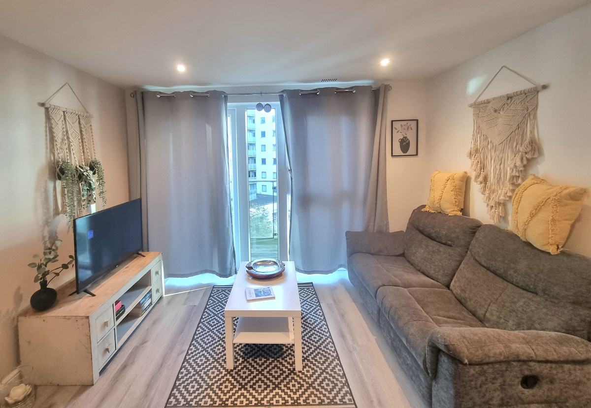 Amplio apartamento de 60 metros cuadrados / 645 pies cuadrados de 1 dormitorio (raro en Londres) en un bloque moderno con acceso al ascensor. En la cuarta planta, es luminoso, tranquilo y cuenta con ventanas de suelo a techo, balcón y una cómoda sala de estar. A solo 7 minutos de la estación, a 10 minutos de Greenwich y a 15 minutos de London Bridge. +3 tiendas de comestibles a 2 minutos a pie. Estacionamiento gratuito en la calle Comodidades clave: • Cama tamaño «king» con colchón EVE de primera calidad • Televisor HD de 55" • Escritorio de trabajo • Lavadora/secadora. • Nespresso • Lavaplatos.