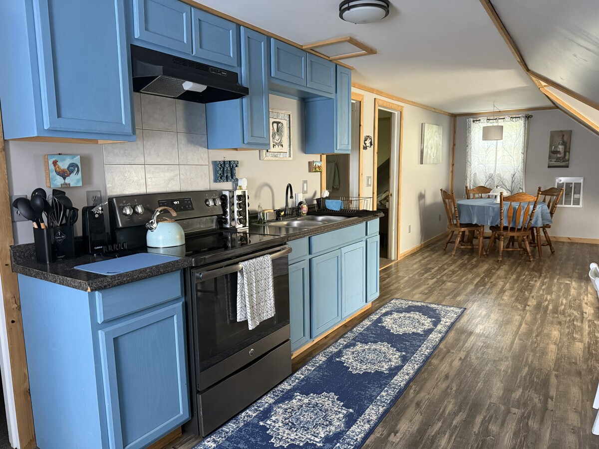 Disfruta de nuestra escapada al campo en 130 acres, a pocos minutos de la Universidad Clarkson, SUNY Potsdam, St. Lawrence University y SUNY Canton. Explora nuestro establo de caballos, rutas de senderismo, arroyo o relájate junto al estanque. ¡También estamos ubicados cerca de excelentes senderos para motos de nieve y esquí! El apartamento tipo estudio se encuentra encima de un garaje de nueva construcción, que no está unido a nuestra casa, por lo que tienes mucha privacidad. Es un diseño abierto con una cama tamaño queen, un sofá cama y una cama nido doble que se puede sacar.