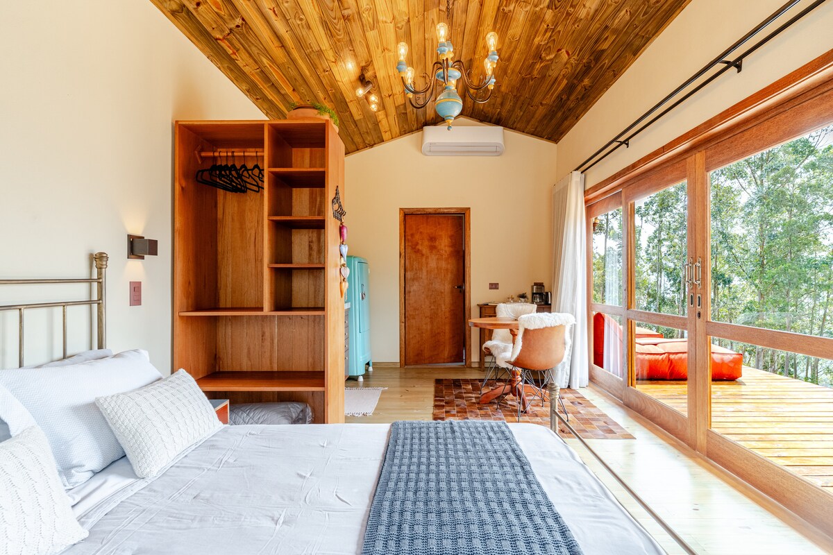 Situado en el corazón de Mantiqueira, es el destino perfecto para una escapada romántica. Aire acondicionado, calefacción, cama tamaño queen, bañera doble grande, Smart TV de 55 pulgadas, terraza, fogata y espacio para microondas, todo para darte la bienvenida con total comodidad. Varias opciones para excursiones, senderismo y excelentes restaurantes. Junto al olivar Azeite Veroli, la bodega Villa Santa Maria y la bodega Raízes do Baú. A solo 29 km de Campos do Jordão y a 180 km de São Paulo. ¡Te estamos esperando!