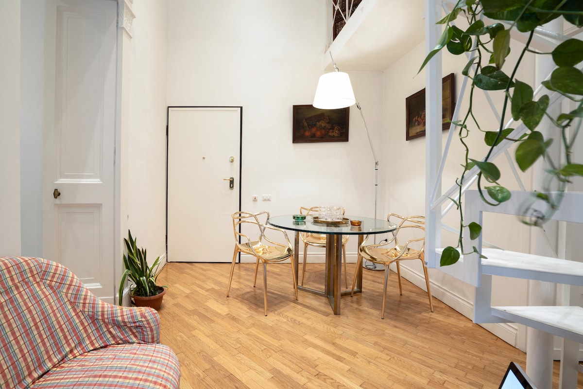 Appartamento in stile loft con vista sull'Orto Botanico di Napoli e sul Vesuvio. Siamo nel vero cuore di Napoli, a pochi passi da Via Duomo, dalla famosa via dei Presepi, dalle linee metropolitane, dalla stazione centrale , dall'aeroporto, dal Museo Archeologico e da tante altre attrazioni più famose di Napoli. È una soluzione autonoma in cui governa la privacy. Composta da un letto matrimoniale, un angolo cottura, un bagno privato, un divano letto che permette di ospitare anche un'altra persona