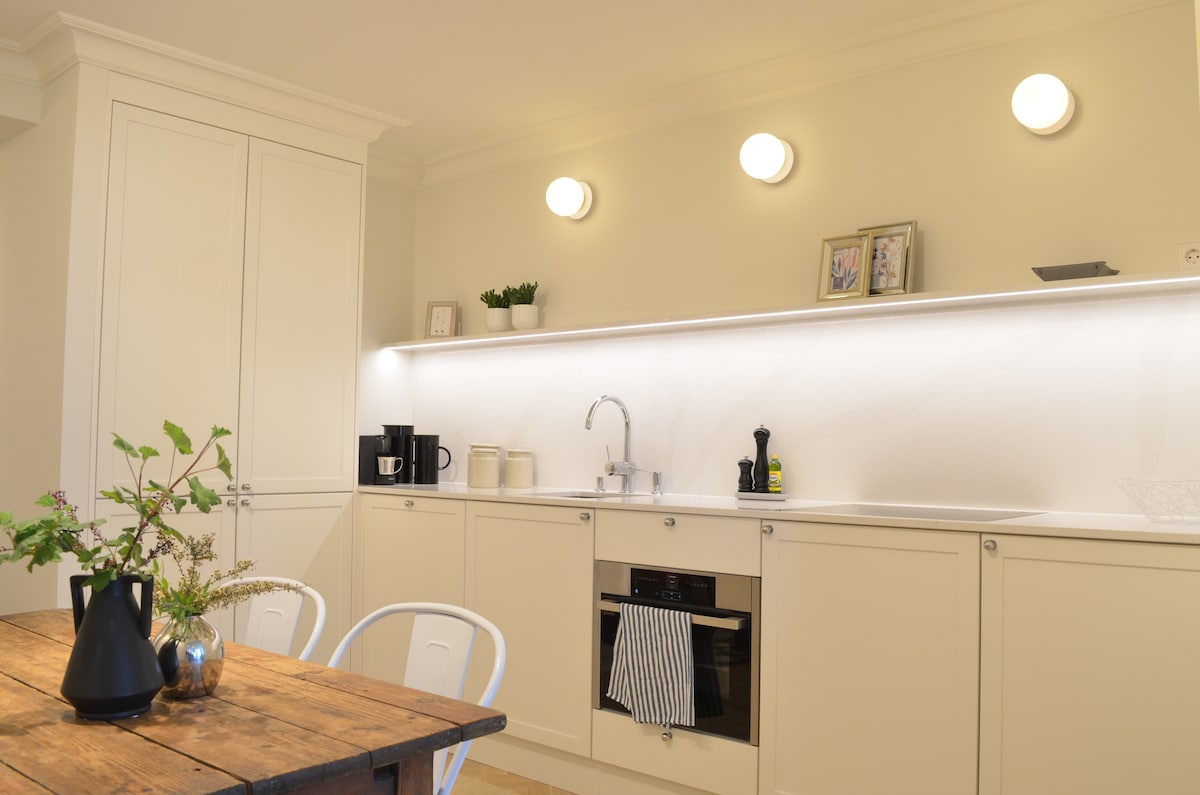 Unsere moderne große & helle Wohnung in Kühlungsborn bietet reichlich Platz für 4 - 6 Personen. 1 Wohnzimmer mit einer großen Terrasse, 1 Küche die reichlich Platz bietet zum Kochen mit Freunden, 2 Schlafzimmer, 1 großes Bad mit Dusche & Badewanne, 1 Gäste / WC. Jedes Zimmer verfügt über einen Fernseher. Die Küche ist vollausgestattet vom Kaffeeautomaten bis zur Spülmaschine. Das kleine Highlight für schlechtes Wetter ist eine PlayStation 5 die genutzt werden kann. Die Wohnung ist ebenerdig.