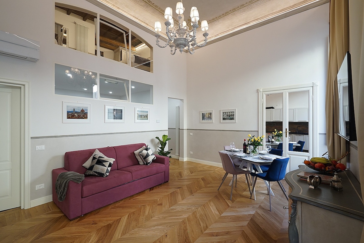 Este apartamento exclusivo en el corazón de Florencia ofrece una vista impresionante de la Cúpula de Brunelleschi y está a pocos pasos del Duomo, la Piazza della Signoria, los Uffizi y el Ponte Vecchio. Reformado con materiales de alta calidad, cuenta con aire acondicionado, cocina totalmente equipada, lavavajillas y lavadora. La luminosa zona de estar y el encantador dormitorio en altillo lo convierten en la opción perfecta para una estancia cómoda e inolvidable en la ciudad.
