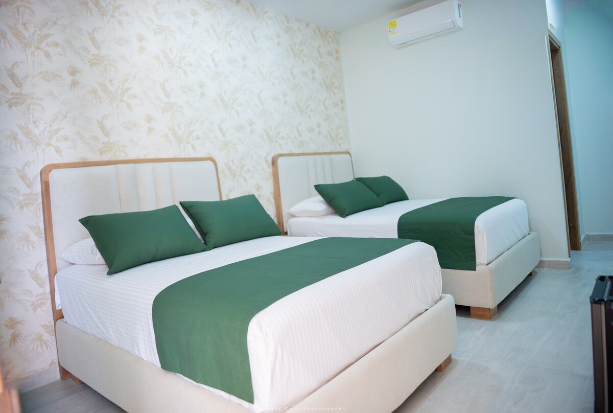 Disfruta una habitación amplia y cómoda en el Hotel Hermoso Caribe, a pocos pasos de la playa en Tolú. Un espacio fresco, privado y con aire acondicionado, ideal para parejas o familias que buscan descanso, buena ubicación y ambiente caribeño. Relájate con la brisa marina y disfruta la tranquilidad de Tolú en un espacio diseñado para tu descanso.