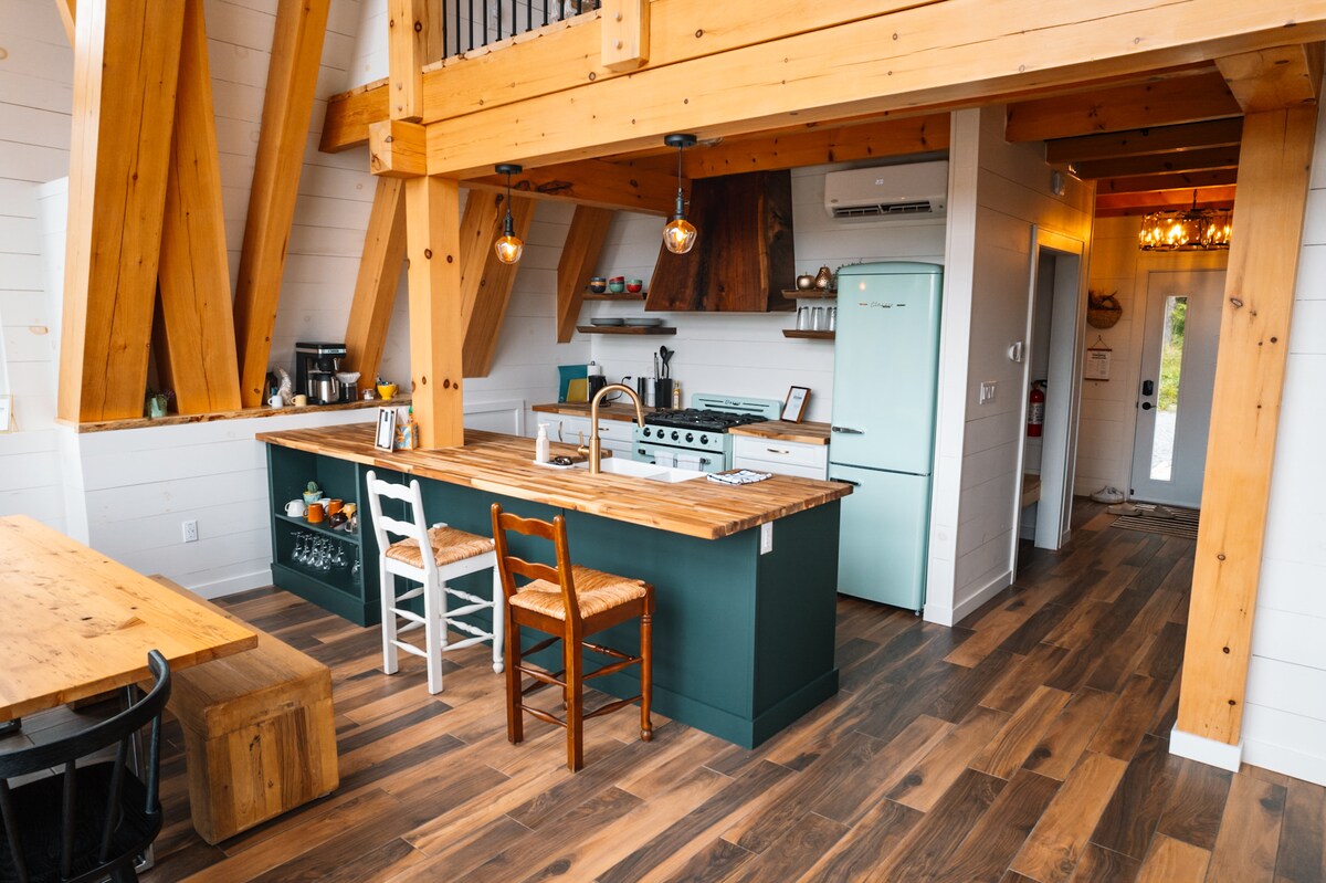 Esta iglesia única tiene personalidad propia. El dormitorio principal tiene una cama tamaño king y un baño privado con tocadores dobles. Loft con unas vistas impresionantes de la espectacular vidriera de cristal que incluye 2 camas tamaño queen. Segundo baño de tamaño completo. La chimenea de doble cara en la sala de estar te hará sentir cómodo junto al fuego mientras ves tu televisor de 55 pulgadas. La cocina enorme y de concepto abierto totalmente equipada es un sueño hecho realidad. Los bancos originales de la iglesia acomodarán a muchos alrededor de la mesa de borde vivo hecha a mano.