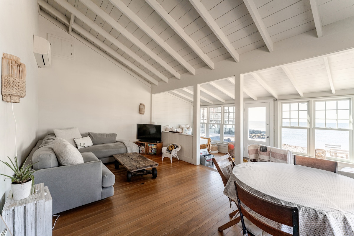 Recientemente renovada y destacada como una de las mejores Airbnb por la revista New York Magazine, The Beach Cottage ha sido diseñada y decorada en un estilo orgánico moderno, con una paleta de blancos y neutros para crear una escapada serena y tranquila. Relájate en el amplio, luminoso y abierto salón, que cuenta con una pared de cristal para disfrutar del interior y el exterior con amplias e ininterrumpidas vistas al agua. Quédate en la propiedad para nadar, pasear por la playa, disfrutar de las puestas de sol y hacer barbacoas, o aventúrate a disfrutar de todo lo que North Fork tiene para ofrecer.