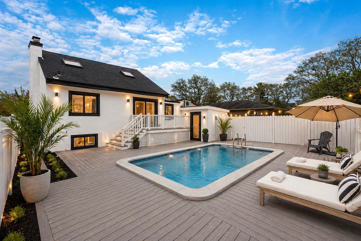 Elegante escapada de 3 dormitorios con oficina privada cerca del ferry de Long Island