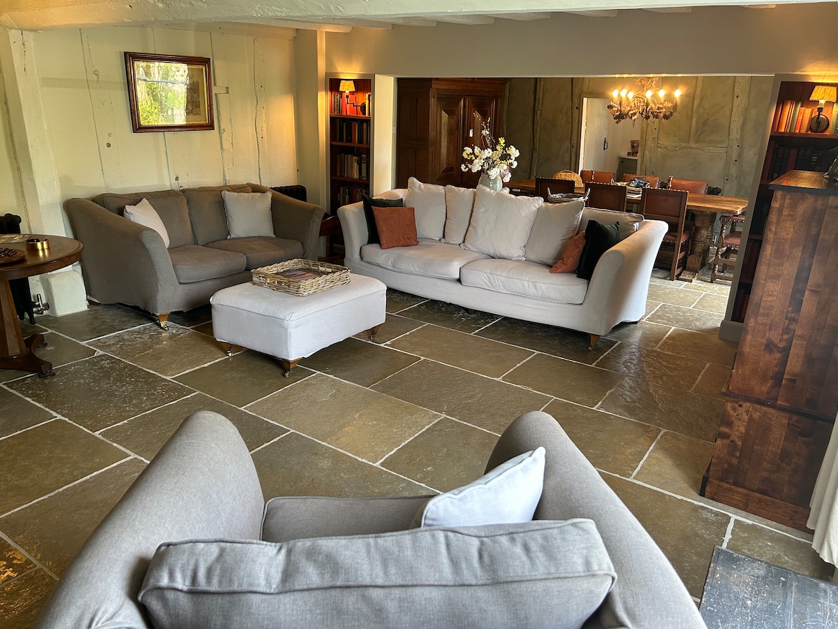 Water Meadow Cottage. A gorgeous 3-bedroom house, comfortably sleeping 6, ideal for families and anyone to unwind in all seasons. With a private south-facing garden full of flowers and birds, and secluded patio with delightful views across meadows. The stunning living room with original beams and bright windows is inviting in summer, and so cosy in winter with its wood-burning stove. Nestled in beautiful quiet countryside, a short drive from the coast, and Aldeburgh, Thorpeness, Orford.