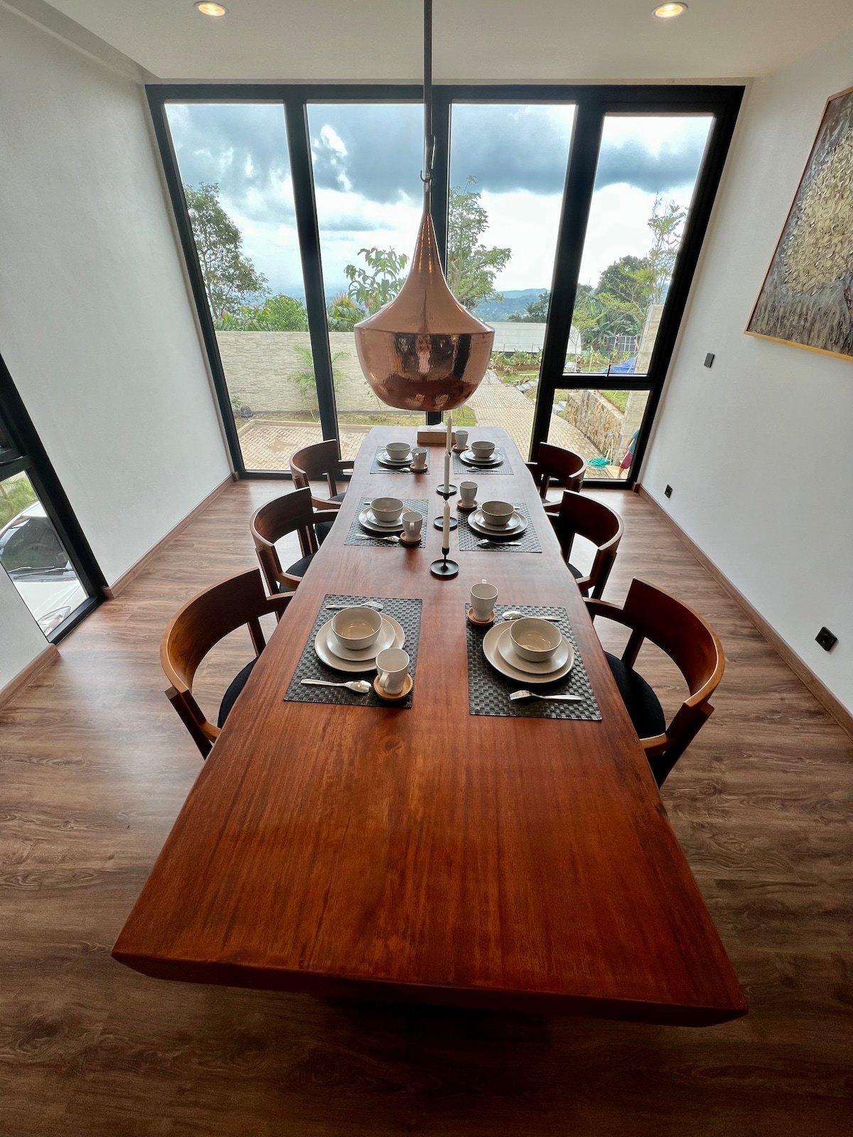 Escapa de la ciudad a esta casa tropical privada con impresionantes vistas a la montaña. Disfruta de amplias habitaciones con grandes ventanales, una gran terraza, comedor al aire libre, mesa de billar y wifi rápido. Perfecto para familias, parejas o trabajadores remotos. Rodeado de naturaleza, con amplio aparcamiento y circuito cerrado de televisión. Fácil acceso a través de la ruta alternativa de Puncak: ¡tu tranquilo refugio te espera!