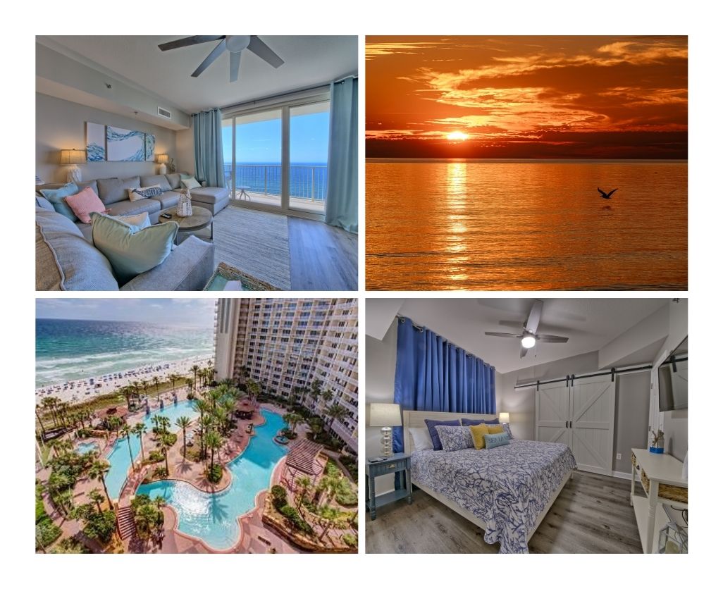 Increíbles vistas, frente al golfo y puede ser la mejor vista en el extremo oeste de Panama City Beach cerca de 30A, amplia playa dedicada colindante con el Parque Estatal Camp Helen, refugio para parejas en Pinnacle Port... cerca de 30A, Carillon, Rosemary, etc. 3er adulto o niño en sofá cama. Nivel de ático (pisos 11/12 de media altura) estilo casa adosada ~ 900 pies cuadrados, verdadero paraíso, balcón frente a la playa, vistas al golfo en todas las habitaciones. (Para parejas o 3 adultos o 2 adultos y niño mayor supervisado) - sillas de playa y sombrilla.