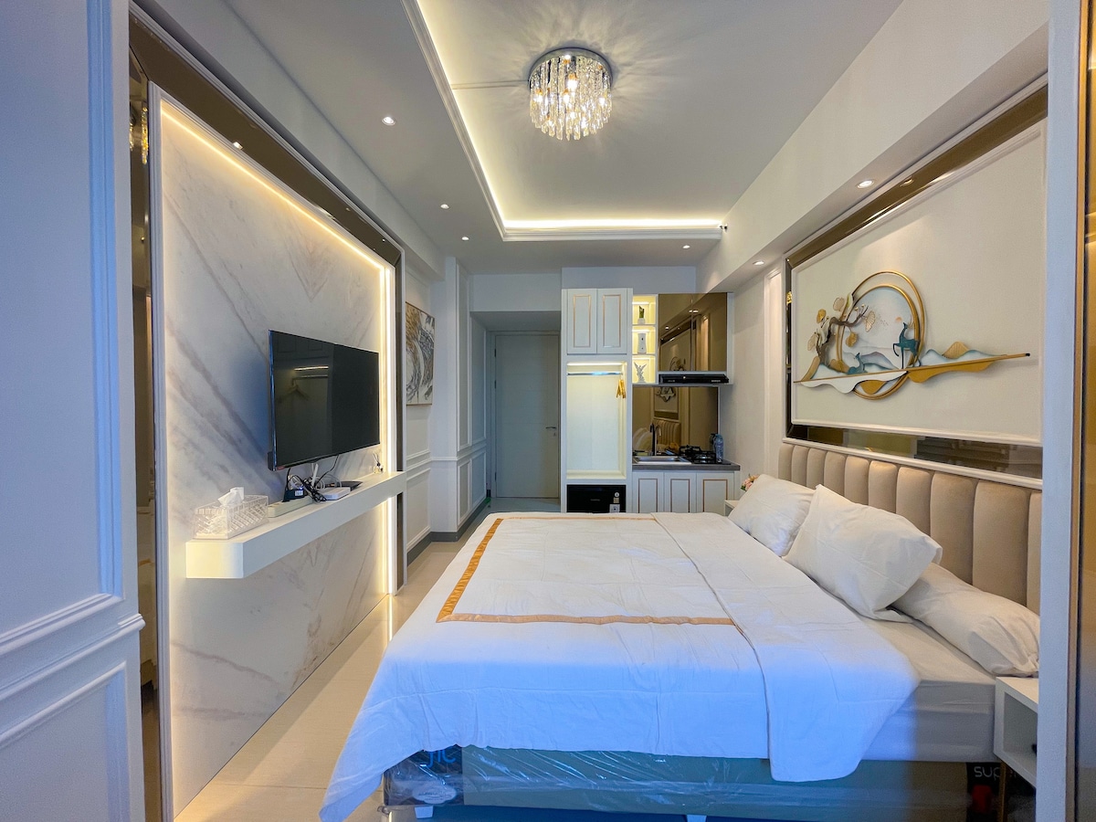 Un apartamento elegante y espacioso con 2 dormitorios, 2 baños y un sofá cama con capacidad para hasta 6 personas. Su ubicación está justo encima del centro comercial Ciputra World con acceso directo a restaurantes, tiendas y entretenimiento. El alojamiento tiene una cocina completa y comedor, excelentes vistas hacia las montañas en el sur y servicios como lavadora y secadora, wifi, televisión por cable, toallas y jabones. También se encuentra a solo 5 minutos en coche de la autopista.