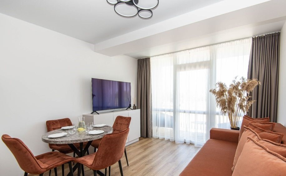 Apartamento exclusivo. Dos dormitorios separados con camas de matrimonio y un gran sofá cama, con capacidad para 6 personas. Sobre el número de personas, más de 4 personas: se debe informar por separado. En el apartamento, encontrarás todo lo que puedas necesitar para una estancia tranquila y de calidad. Se admiten cachorros de hasta 10 kg 🐶 Por favor, sé amable y no permitas mascotas en el sofá, las camas y supervisa que no haya «accidentes» en las áreas alfombradas. De lo contrario, te pediremos que cubras y compenses la limpieza en seco. Si tienes alguna pregunta, no dudes en ponerte en contacto con nosotros.