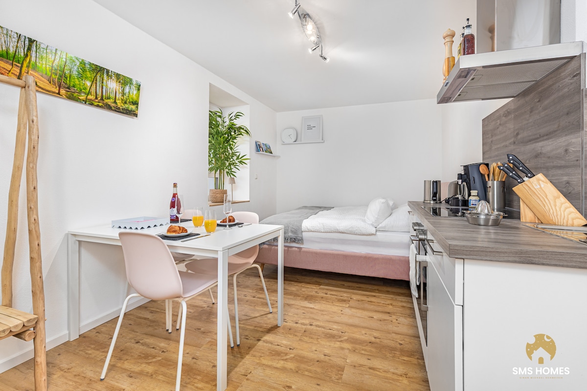 Viajas en silla de ruedas o para personas con discapacidad. ¿No hay problema aquí? En el mobiliario de nuestro apartamento, estábamos particularmente comprometidos con un alto nivel de comodidad para las personas con discapacidad. El departamento está en el piso baja y se puede cruzar fácilmente con una silla de ruedas y se puede acceder fácilmente desde la cochera cubierta. Un diseño espacioso con puertas extra anchas y una cocina accesible con lavabo inferior y estufa eléctrica te espera.