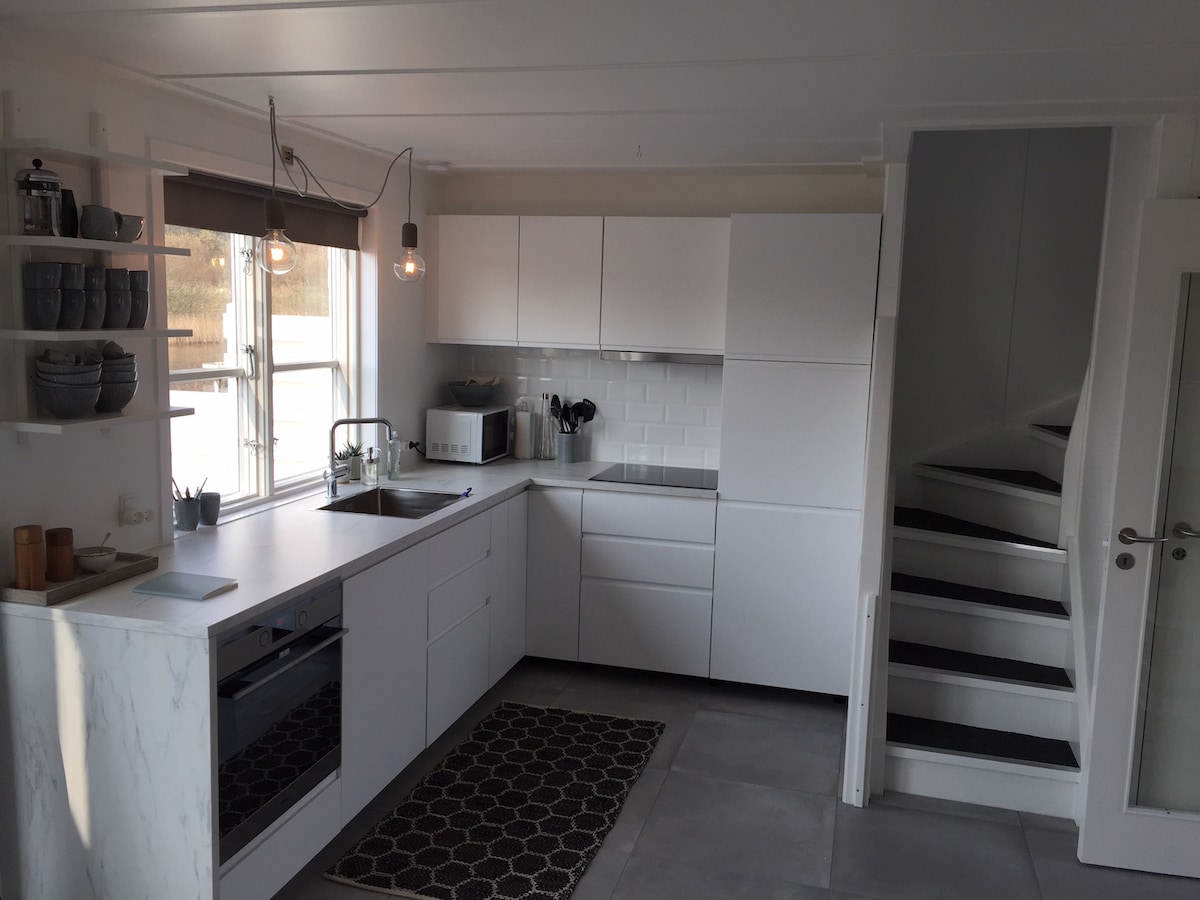 A holiday in perfect surroundings. Located a short ride on a bike from the local restaurants and a perfect sandy beach. Furthermore just a 10 minute car ride to Århus C. The house is furnished with stylish danish design, and has 3 separate bedrooms. On top you'll get a home office, a playroom and a home-gym. All of which can be easily converted in to another bedroom. The garden has apples and blackcurrants, a spacious terrace and a charcoal grill. Welcome to the good life in Risskov, Aarhus!