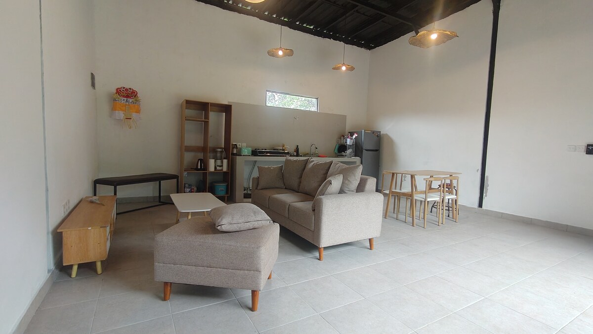 Descubre otro Bali alojandote en nuestra casa de Tabanan alejada de las zonas turísticas, cerca del centro y su mercado nocturno del ajetreo matinal típico Balines, a poca distancia de las magnificas terrazas de arroz de Jatiluwih del Lago de Bedugul de las termas y del famoso templo de Tanah lot. la casa tiene un salón amplio, un gran patio compartido con entrada privada y dos mascotas.