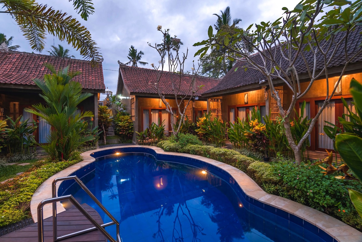 Vista a la piscina de lujo en Elemento Homestay Abiansemal