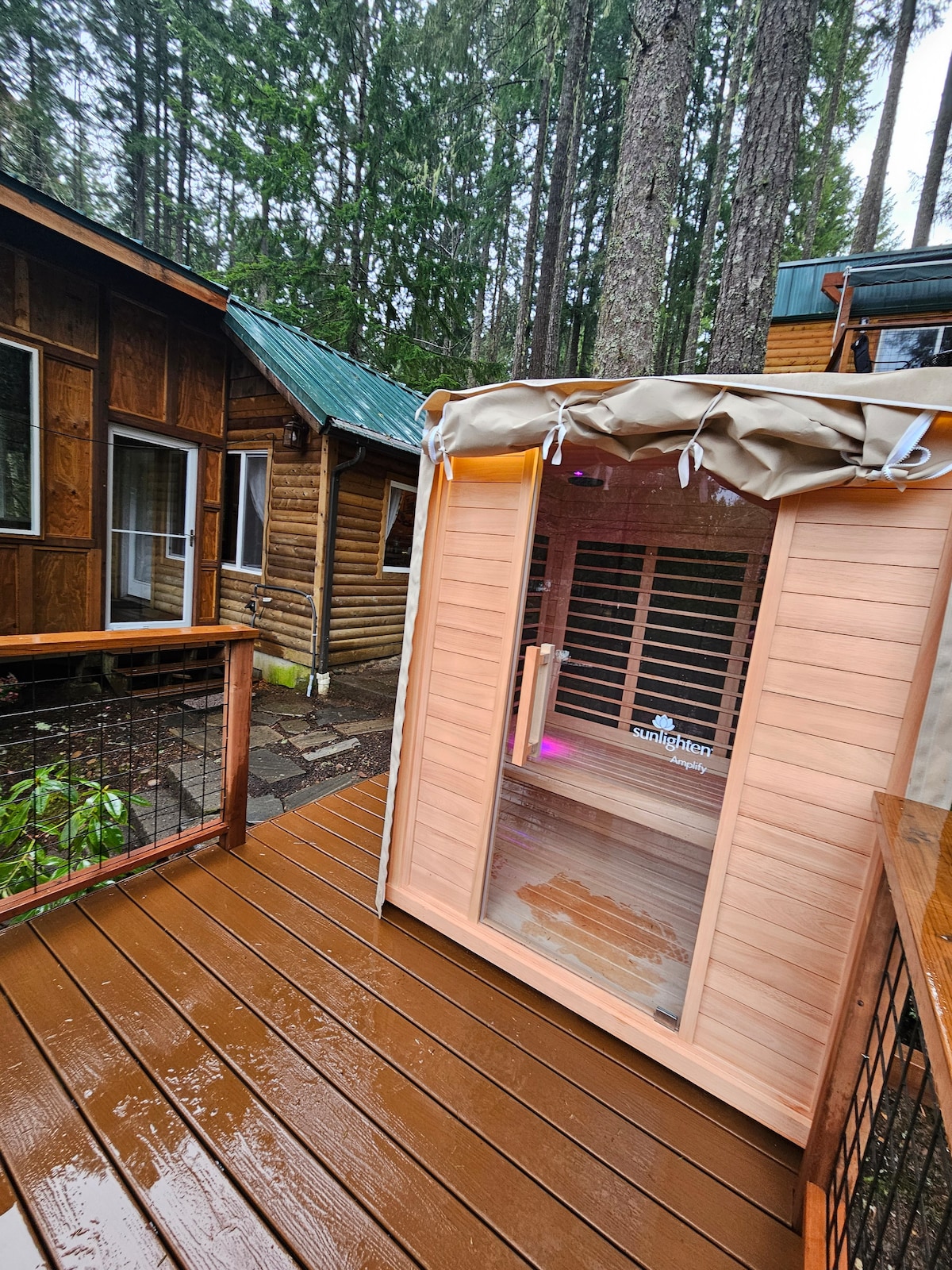 A private two-cabin retreat on a serene 20-acre lake surrounded by towering pine trees. Warm up in the outdoor infrared sauna, unwind by the electric fireplaces in both cabins, and enjoy cozy evenings by the firepit. Perfect for romantic getaways, wellness resets, or quiet nature escapes, this retreat offers comfort, privacy, and unforgettable winter charm. 🌲 The Property You’ll have exclusive access to two stand-alone cabins, giving you flexibility and privacy. 🏡