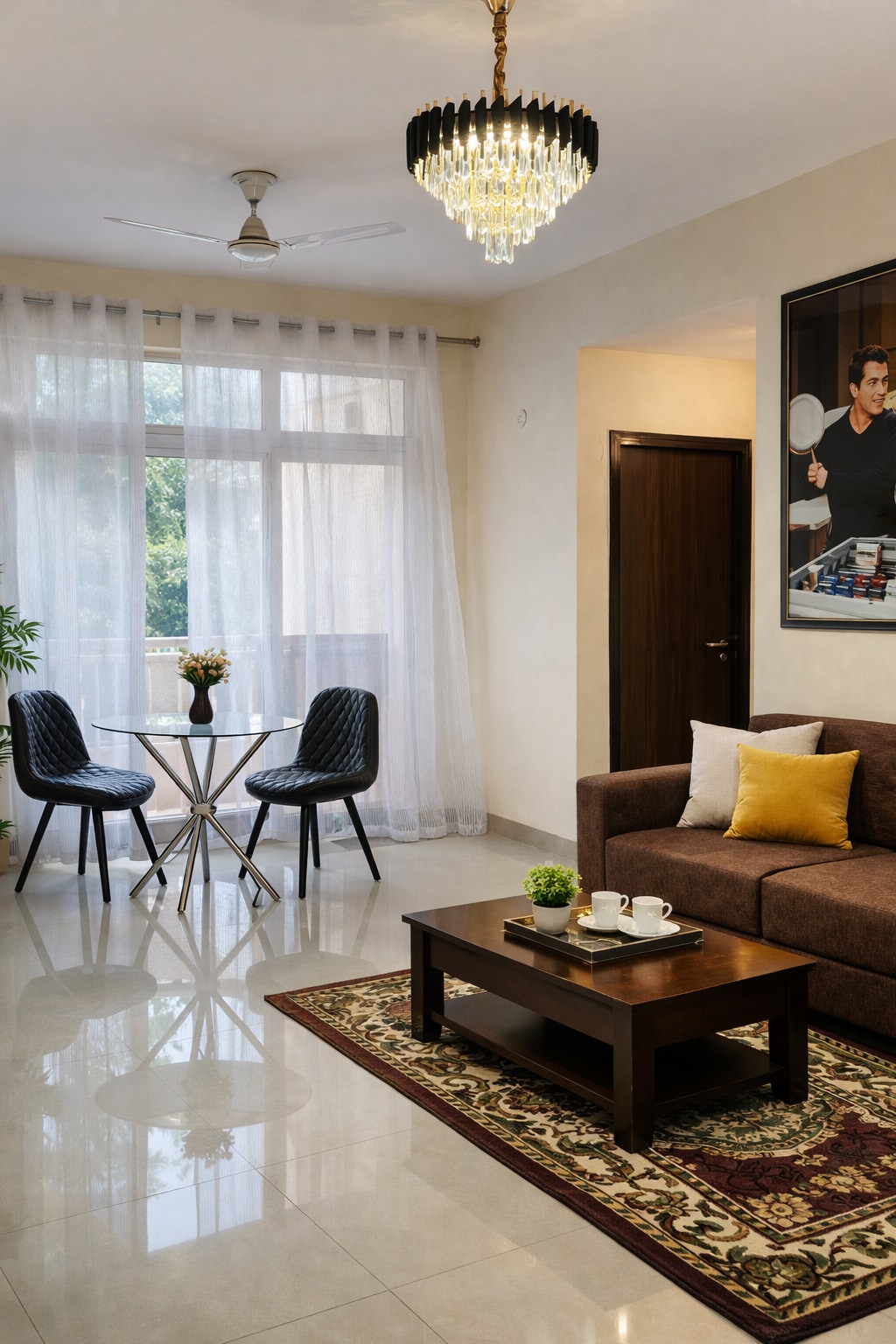 Welcome to Sukoon Stays — luxury 3 BHK apartment near Taj Mahal, designed for travelers who value comfort, safety and seamless hospitality. Blending elegant interiors with a warm, homely feel, the space is ideal for families, couples and international guests. Located in a secure gated society, offers in-person check-in, private parking, gym access, and excellent connectivity. Whether you’re visiting for sightseeing or a relaxed stay, we promise peace, privacy and a truly stress-free experience