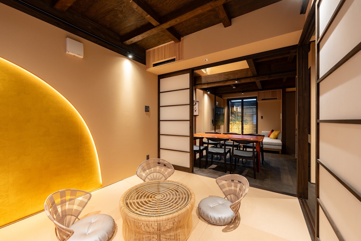 Ubicada en el distrito de Kazuemachi Chaya, designado como Distrito Nacional de Conservación Importante para Grupos de Edificios Tradicionales. Construida en 1898, esta casa Machiya conserva su encanto y está decorada con un estilo moderno, mezclando interiores de varias nacionalidades y épocas. «Kazuemachi» es una ciudad tranquila, no abarrotada de turistas. Relájate en el ambiente tranquilo de la habitación tradicional japonesa, desconecta en la auténtica bañera de madera «hinoki» hecha de ciprés fragante.