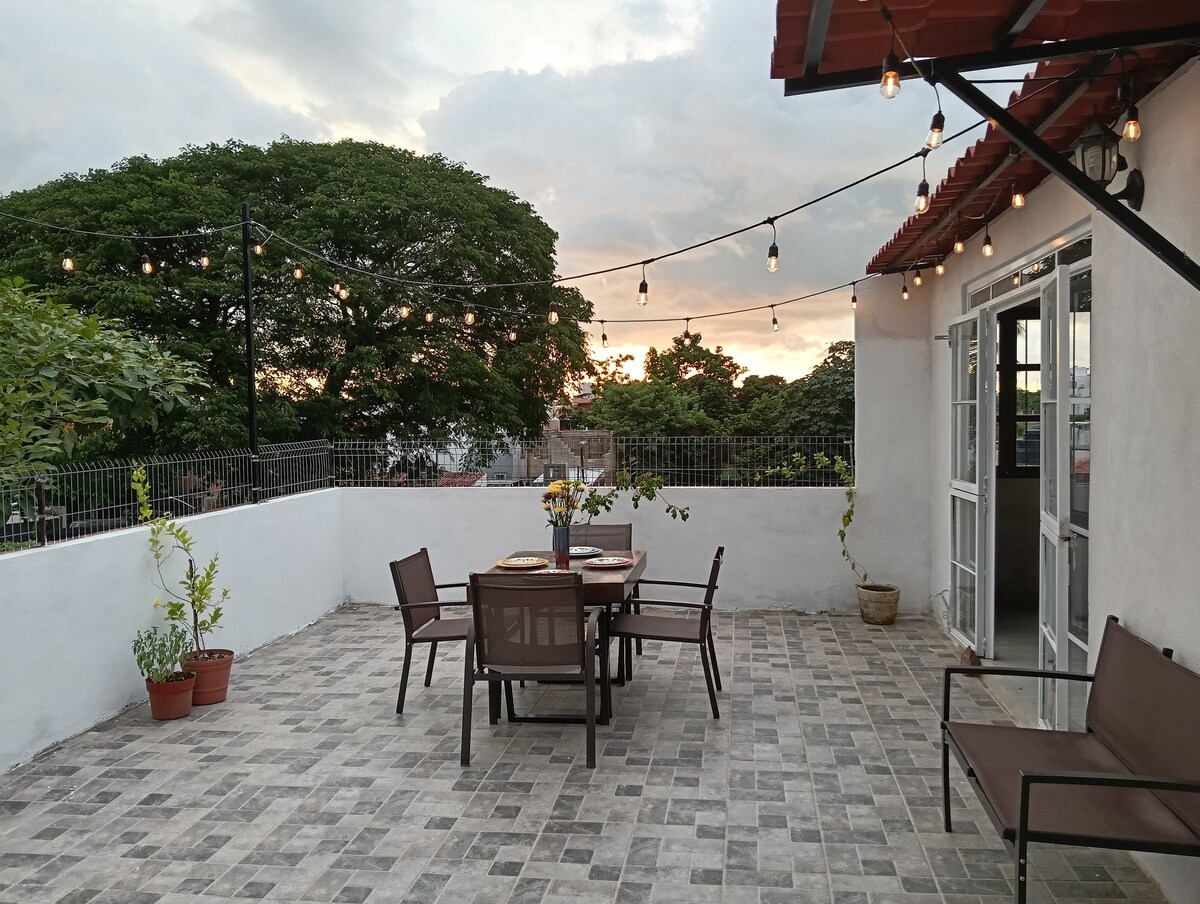 Disfruta con tu familia y/o amigos de una hermosa vista panorámica con ubicación céntrica a 10 minutos de distancia de la plaza caminando. Esta casa cuenta con 3 habitaciones cama Queen y 1 habitación cama King, aire acondicionado en la sala y en 2 habitaciones, 2 baños completos, una cocina amplia y 2 terrazas con mucho espacio para convivir.