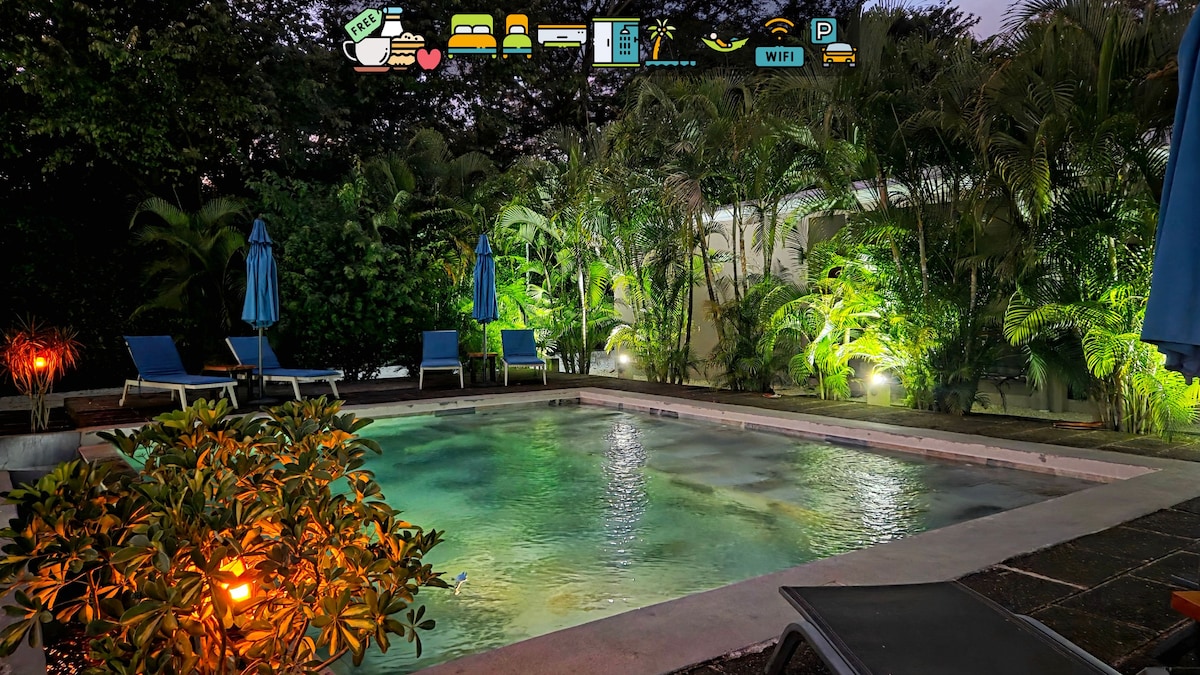 Nuestras habitaciones estan en el centro de Tamarindo a pocos minutos caminando de la playa, ATMs, bars, discotecas y restaurantes. Contamos con un espacio con naturaleza y piscina para que su estadía sea relajante y puedan disfrutar su estadía en Tamarindo. El desayuno está incluído en nuestra cafetería de especialidad. Al tener una ubicación perfecta y céntrica, estamos a cerca de una discoteca y puede afectar su descanso durante el fin de semana. Considerelo si tiene sueño liviano.