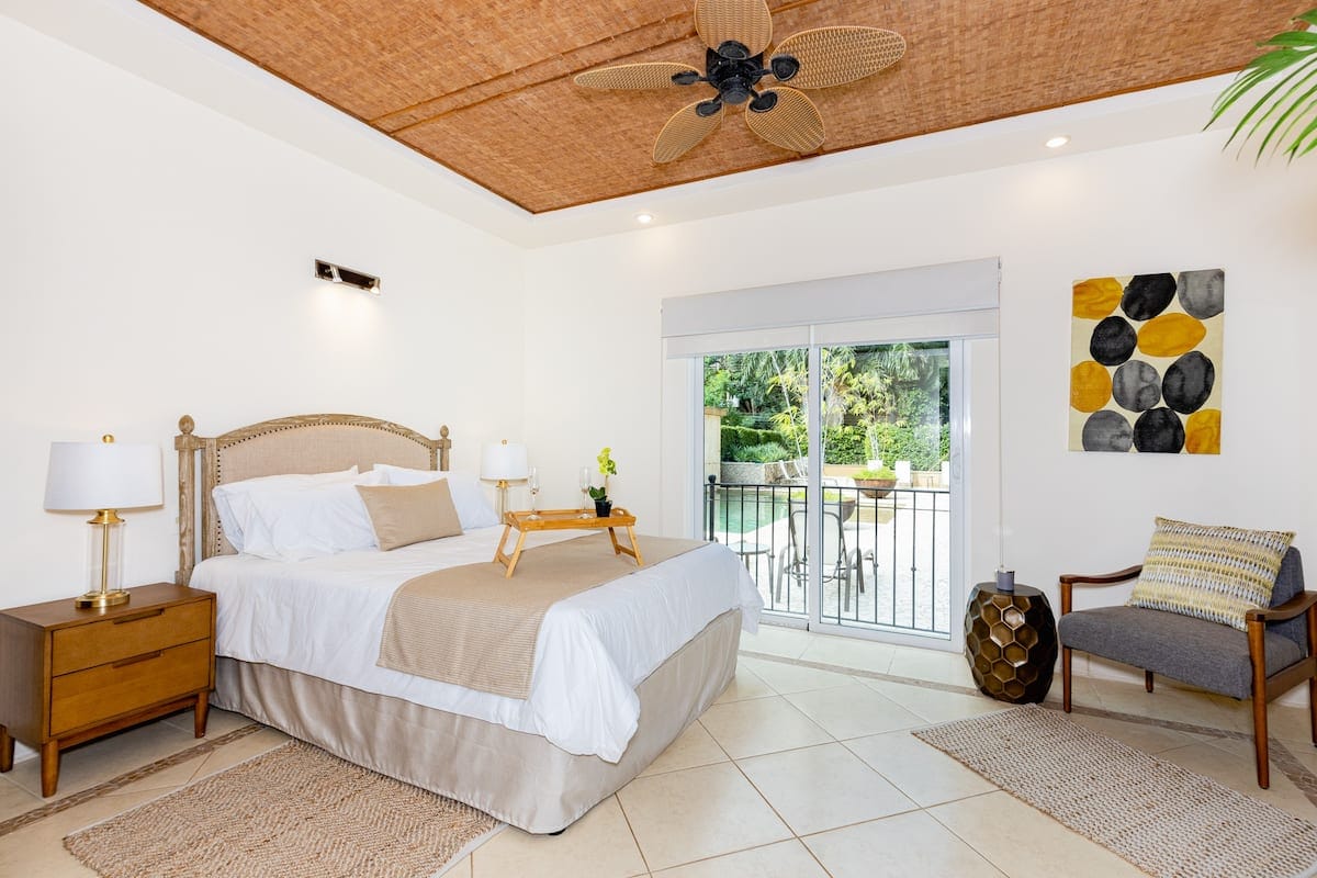 ¡Bienvenido a nuestro espacioso y elegante apartamento en la planta baja en el corazón de Tamarindo! Este acogedor refugio de 1 dormitorio ofrece una escapada cómoda con comodidades modernas y un toque de lujo. El dormitorio cuenta con una cama tamaño king con un colchón supercómodo, sábanas de alta calidad, almohadas y edredones para garantizar una noche de sueño reparador. Tanto si estás aquí para una escapada romántica como para una aventura en solitario, encontrarás alojamientos acogedores y elegantes.