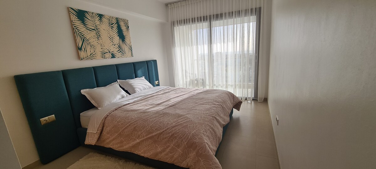 2 dormitorios (cama king size de 2 m × 2 m/cama doble) 2 baños (bañera/ducha italiana) Gran salón con vistas a las piscinas, al mar y al campo de golf. Cocina americana totalmente equipada. Gran terraza, jardines y vegetación , 4 piscinas. También cuenta con wifi, aire acondicionado en las habitaciones y persianas eléctricas para noches tranquilas después de surfear o una escapada de surf en Taghazout, el pueblo de Imsouane o Paradise Valley :)