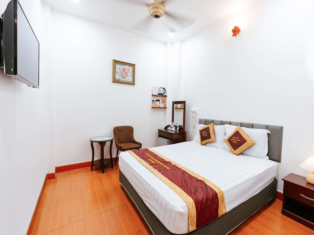 Spacious 27 m² recently renovated studio in a 5-story villa. Bright with a large window and a small balcony for fresh air. The room is designed,d in a tropical minimal style. Comfy queen bed, work desk, sofa bed, and Smart TV with Netflix. Centrally located near D1, D10, and the airport. Within walking distance to authentic eateries, cozy cafés, bustling shopping streets, and cinemas like CGV and Mega GS. Perfect for long stays, this blend of comfort, style, and convenience.