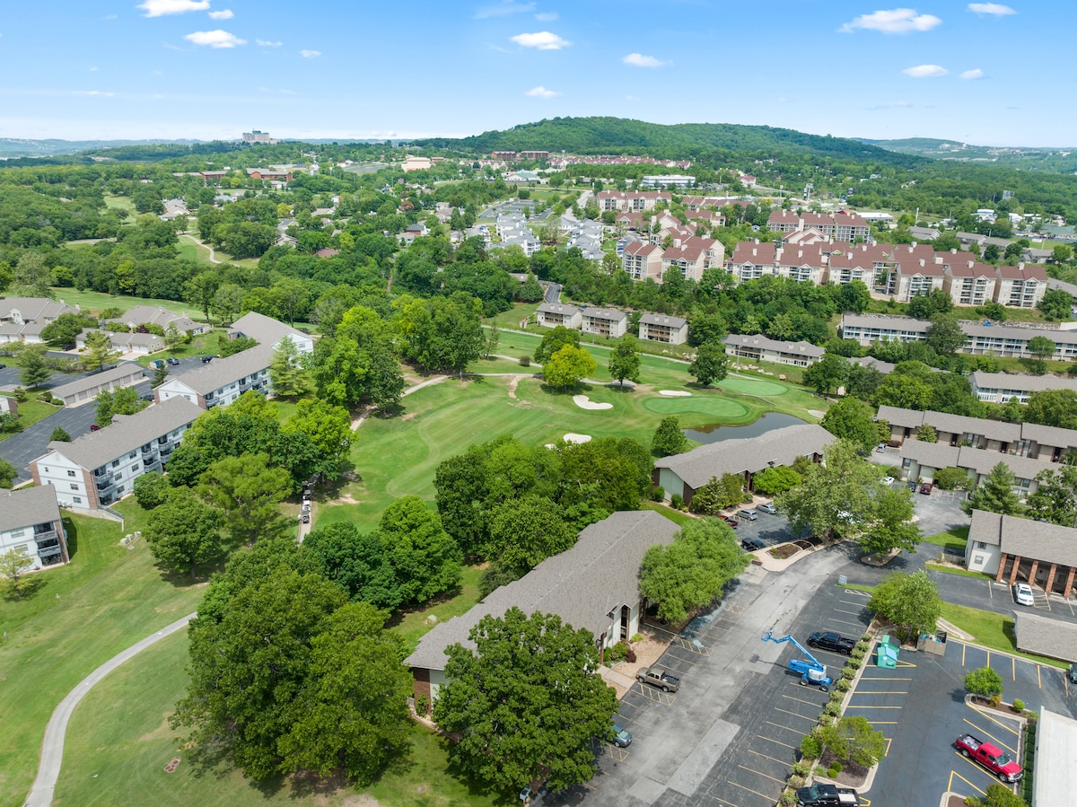¡Te damos la bienvenida a tu mejor retiro en Branson! Este apartamento actualizado de 1 dormitorio y 1 baño en el tercer piso ofrece impresionantes vistas al hoyo 18 de Pointe Royale. Tu apartamento: cocina totalmente equipada, wifi rápido, televisores Roku, espacio de trabajo dedicado con centro de carga. Acceso al resort: disfruta de piscinas interiores/exteriores, bañera de hidromasaje, baloncesto, tenis y canchas de pickleball, campo de golf de 18 hoyos, gimnasio y bar y parrilla (¡a solo 2 minutos a pie!). Ubicación privilegiada: a minutos de Branson Strip, White Water y Silver Dollar City.