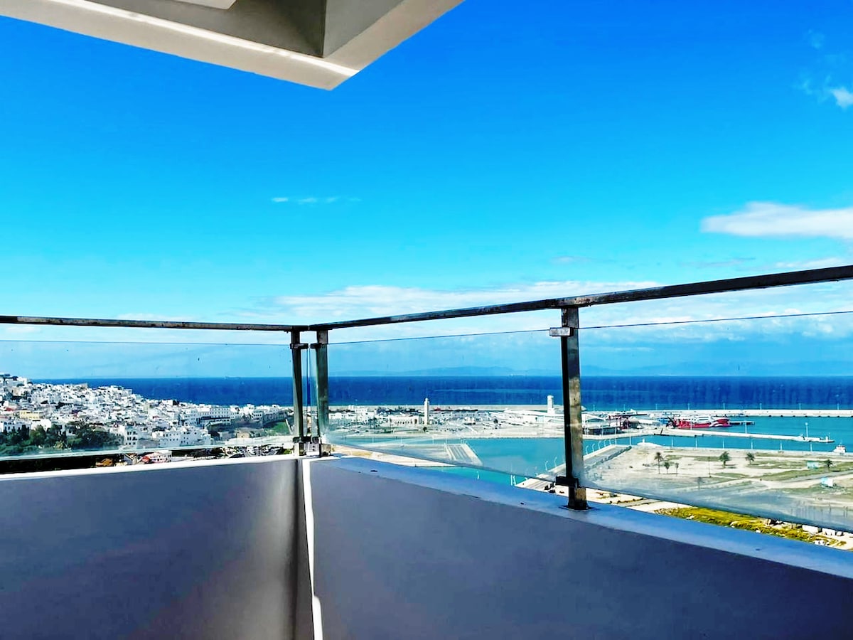 Vous êtes à la recherche d'un appartement moins cher qu'un hôtel. Découvrez cet appartement luxueux en plein centre-ville de Tanger et avec vue partielle sur mer, à 2 min de Marina ,près des cafés et boutiques ,du Mall Ibn Batouta ,de l'ancienne médina et monuments historiques .Le point de départ idéal pour explorer la ville. Cet élégant appartement d'une chambre, un salon ,une terrasse vue mer ,une cuisine américaine , un climatiseur , une WIFI , ( espace de travail ) , smart TV .