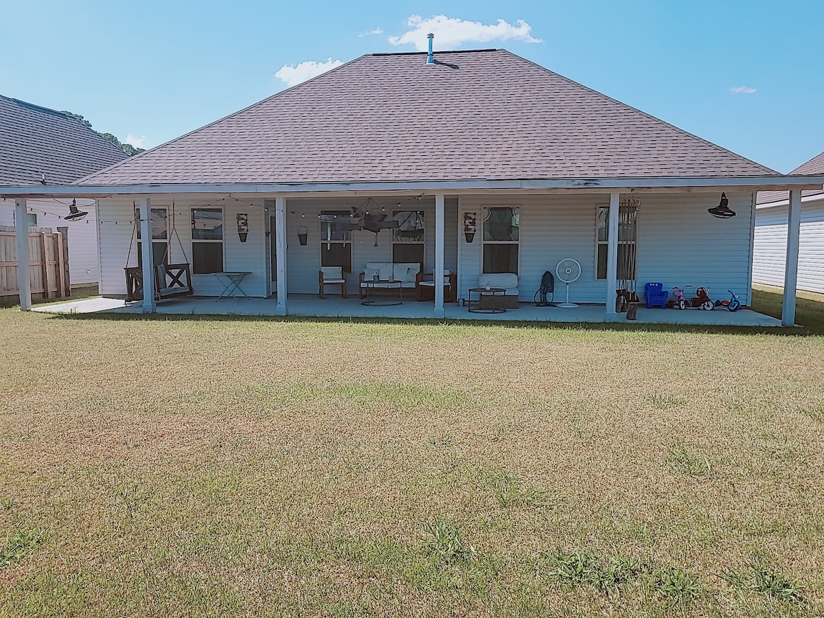 ¡Traigan a toda la familia! ¡Hay mucho espacio al aire libre para todos! ¡Juega al voleibol, dispara algunos aros, disfruta de la cena al aire libre y mecerse en el porche! Relájate en la bañera con patas, cocina en la cocina bien equipada, mira los televisores inteligentes mientras te relajas en el amplio espacio del sofá. ¡Cerca de espectáculos de caballos y lugares! A poca distancia en auto del centro de Covington, a una hora de Nueva Orleans.