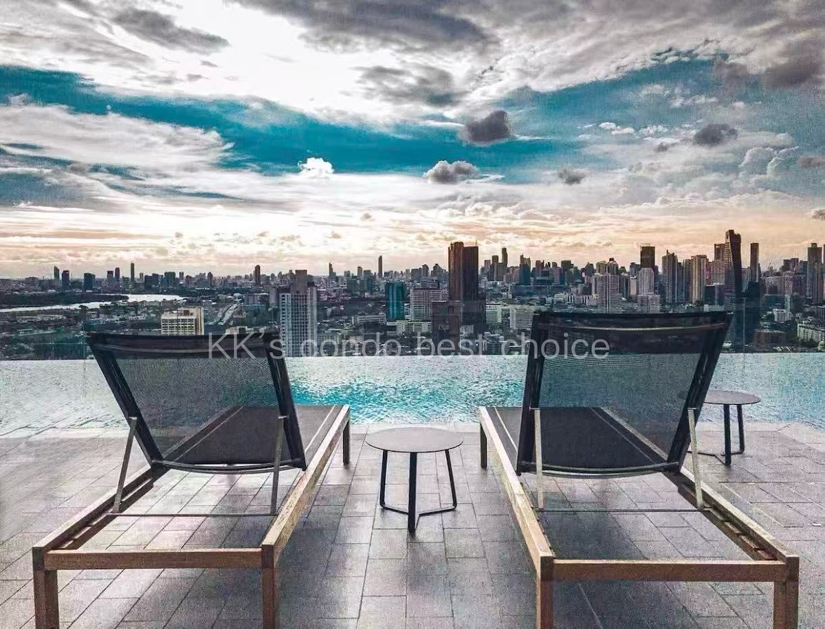 巿中心一室B1D/近地铁/高层城巿景观/暹罗商圈/免费送站/室外泳池/健身/高空酒吧/四晚送接机