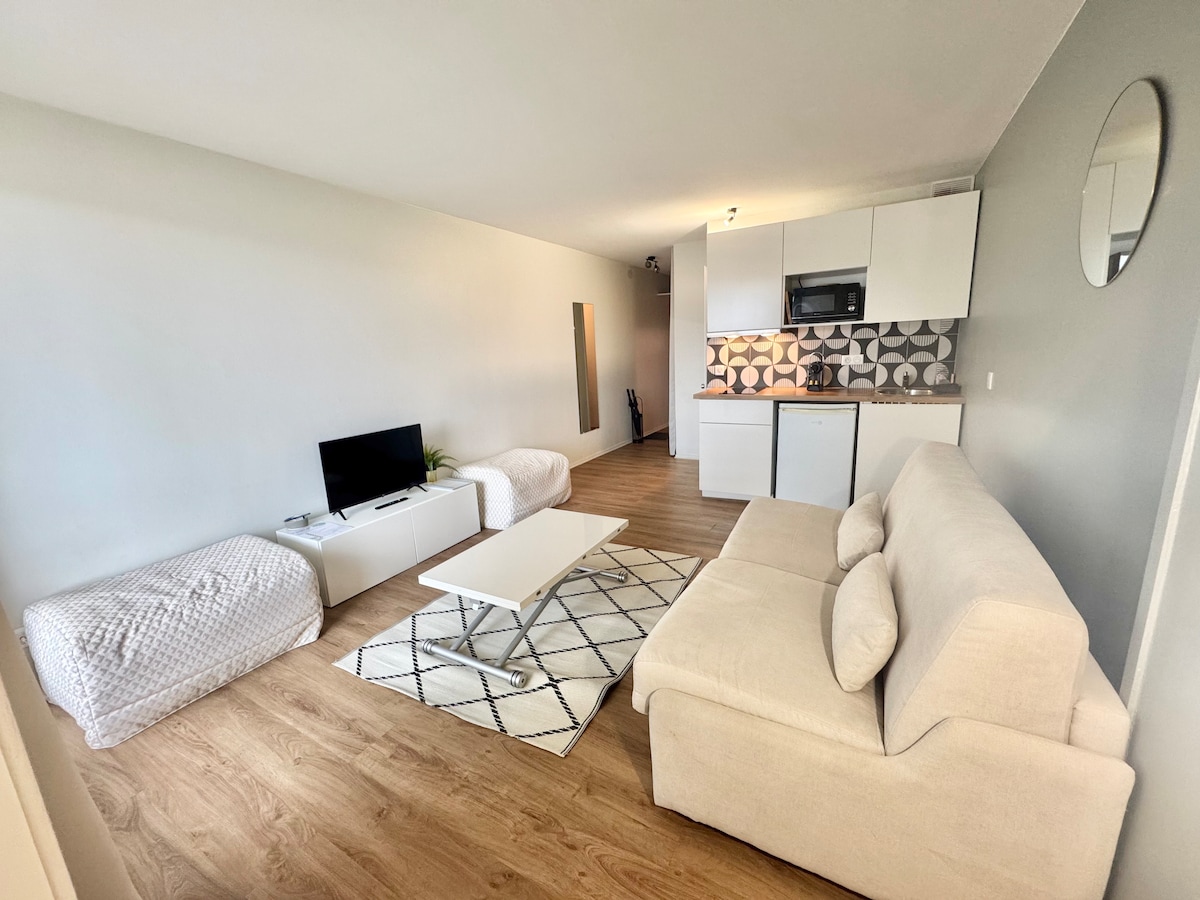 Apartamento T2 de 42,5 m² luminoso orientado al sur en residencia reciente y segura con 2 plazas de aparcamiento en el sótano. Situado en el centro de la ciudad, cerca de las tiendas y a 5 minutos de la playa en coche. Tiene un dormitorio con cama doble, un gran vestidor y TV. El baño está contiguo a la habitación y tiene inodoro, ducha y un gran armario. La cocina está totalmente equipada. Toallas y ropa de cama incluidas.