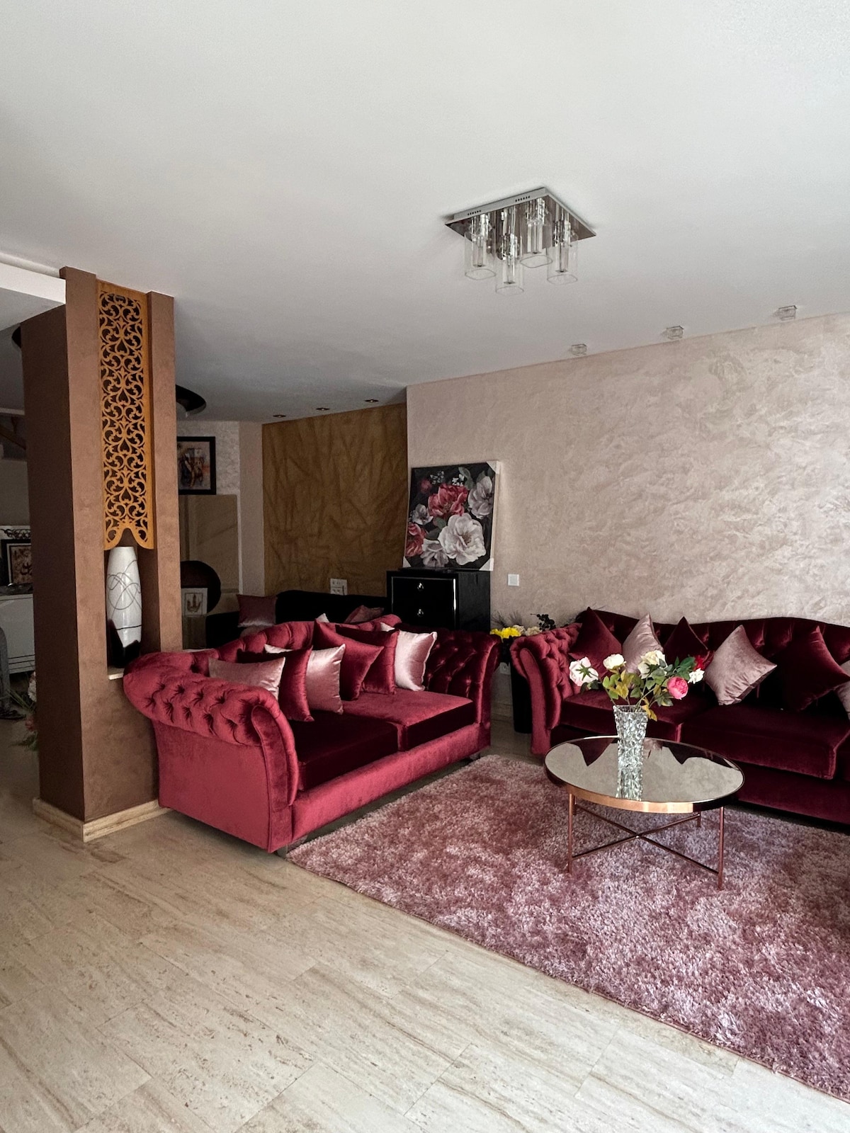 ¡Te damos la bienvenida a nuestra elegante casa familiar en Agadir! Experimenta una mezcla de tradición marroquí y comodidad moderna. Nuestras amplias características de retiro 3 dormitorios acogedores, 2 baños modernos, y una cocina abierta totalmente equipada. Relájate en uno de nuestros 4 elegantes salones, cada uno con una decoración única. Disfruta del jardín privado y la amplia terraza, perfecta para relajarse. Convenientemente ubicado cerca de las atracciones locales, pero en un barrio tranquilo y elegante, nuestro alojamiento es tu base ideal para relajarse o explorar Agadir.