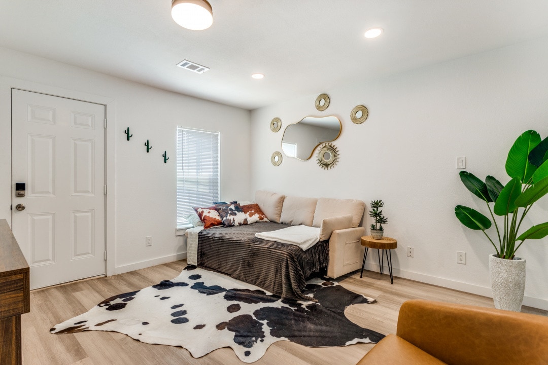 Discover the heart of Fort Worth in sleek style with this Warm, professionally designed & decorated 2BD, 2.5 Bath apartment for top comfort and ease. ONLY minutes walk to 7th St.area; the trendy area where fine dining, shops, bars & entertainment Minutes from the stockyards, Downtown, Linwood park, Dickies Arena and TCU. With brand new appliances & parking, it's the perfect place for a weekend vacation, business & medical professionals, ideal for long stays and couples wanting a fun ESCAPE!