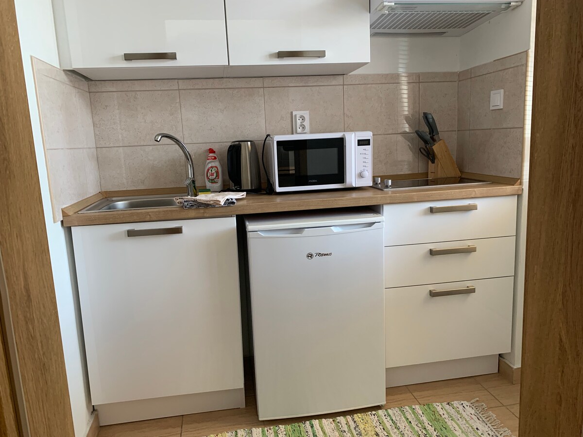 Los apartamentos llevan los nombres de nuestras queridas abuelas. Cada uno te da la bienvenida con su espíritu único, una combinación de piezas de diseño nuevas y antiguas que hemos heredado de nuestros antepasados. El espacio de Marie es más pequeño pero está totalmente equipado. Su anfitrión formal está en el espíritu del diseño escandinavo: madera, líneas limpias y consideración de cada centímetro. Es el lugar adecuado para estadías más cortas, para una o dos personas. Se encuentra en el jardín detrás de la casa de los propietarios con una entrada independiente desde el patio.