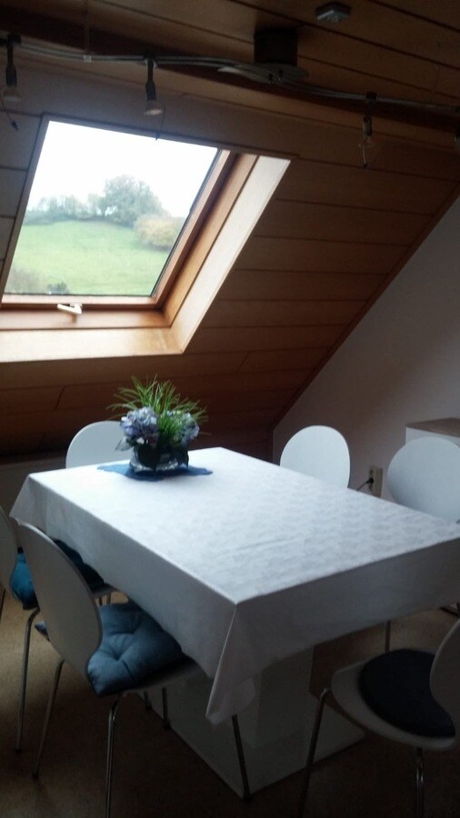 Apartamento de vacaciones completamente renovado (45 m²) para 1-4 personas. Azotea de 35 m² con vistas al valle de Spessart, Odenwald y el monasterio de Engelberg. Dormitorio con cama doble, sala de estar con sofá cama y Smart TV, cocina totalmente equipada, amplio baño con ducha de efecto lluvia, lavadora, secadora, jardín con barbacoa, cuna, trona, wifi gratuito y aparcamiento.