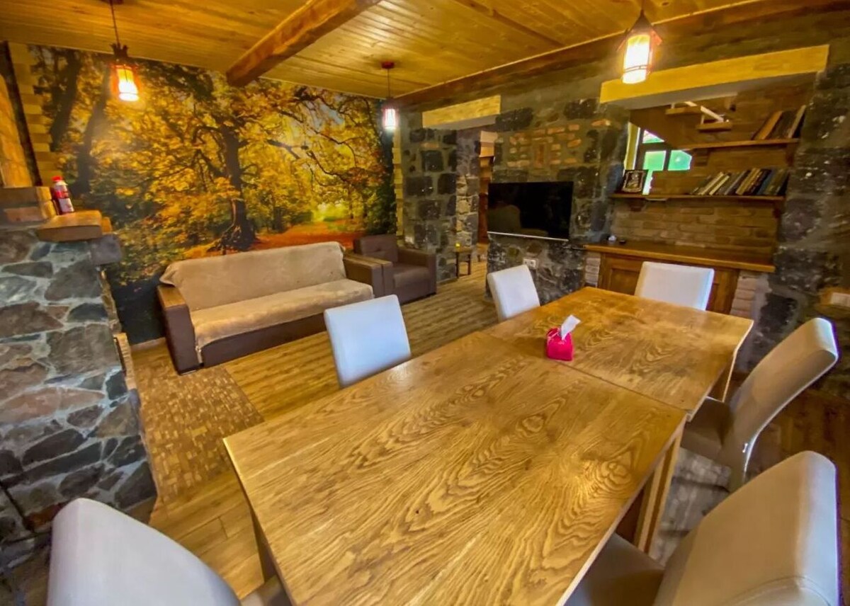 Disfruta de tu estancia en una acogedora casa construida en piedra y madera, con una vista única de las montañas y las verdes laderas de Dilijan. En el interior hay un ambiente cálido y confort moderno: un amplio salón con chimenea eléctrica, una cocina equipada, wifi y todo lo que necesitas para tu comodidad. En el territorio hay un cenador y una zona de parrilla, ideal para cenas al aire libre y noches conmovedoras con familiares o amigos. Un lugar tranquilo, aire limpio y vistas a las montañas crean una sensación de privacidad y armonía. .