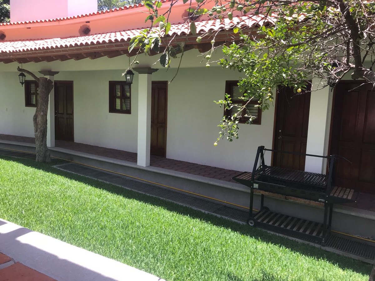 Son 2 habitaciones tipo chalet en 2 niveles diferentes hasta para 5 personas máximo. Magnífica vista con lindo y extenso jardín con mucha vegetación y alberca privada y no climatizada, cocina equipada y privacidad en todo el espacio. Baño compartido en área de recámaras. 3 baños en total. También contamos con asador cerca de la alberca. El centro de Cuerna está a 20 min. caminando. Hay TV, Wi-Fi, cámaras de seguridad y amplio estacionamiento . No se permiten visitantes, mascotas pequeñas sí.